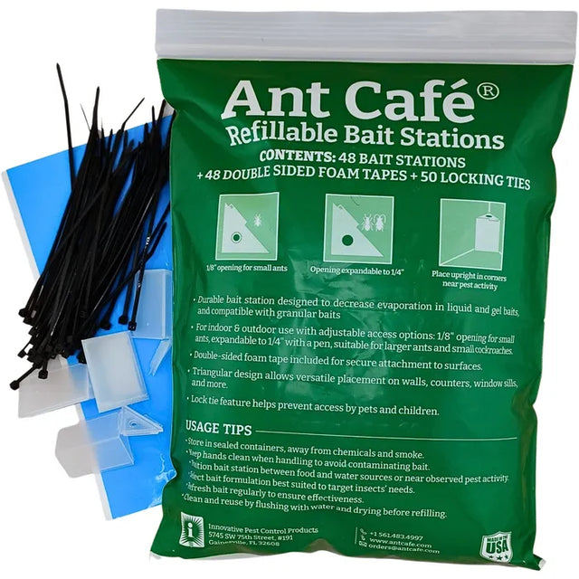Ant Café® Indoor Ant Bait Stations are professional-grade, ready-to-use bait stations designed to control common household ants by targeting the colony at the source. These enclosed stations allow ants to enter, feed, and carry bait back to the nest, helping eliminate the entire colony—not just the visible ants.