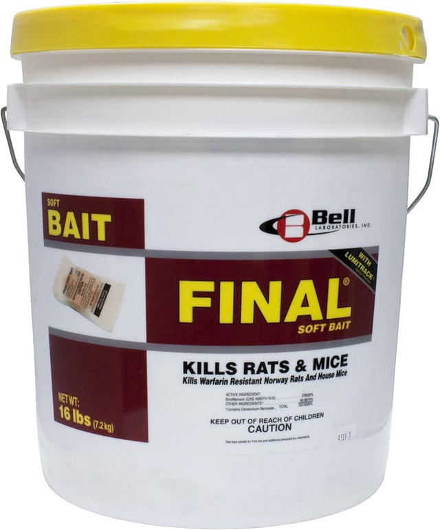FINAL Soft Bait with Lumitrack is a palatable soft bait that contains the powerful single-feed, second generation anticoagulant, Brodifacoum, at a lower toxicity level of 0.0025%. Each 15g sachet of FINAL Soft Bait includes an extruded hole in the center, making it easier for the PMP to place the bait onto the rod and allowing it to be placed more consistently and securely. FINAL Soft Bait has been specially developed to achieve sustained palatability, making it ideal for long-term applications.FINAL Soft Bait incorporates Lumitrack; a special additive that causes rodent droppings to brightly glow under UV or black light. This tool helps PMPs identify droppings in dark or congested areas where they would normally go unnoticed. Rodent droppings help identify species type and track rodent activity (i.e. entry points, pathways and harborage areas). Lumitrack takes the guesswork out of rodent control and improves your baiting strategy.