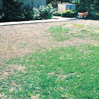 Examine Soil and Turf: Cut out a one-square-foot sample of turf in each selected area, carefully pulling the turf away from the soil.