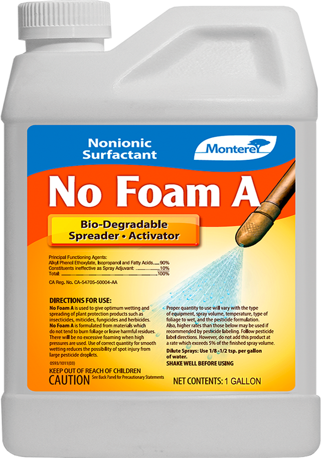 BRANDT NO FOAM A is used to give optimum wetting and spreading of insecticides, miticides, fungicides, herbicides and growth regulating hormones.